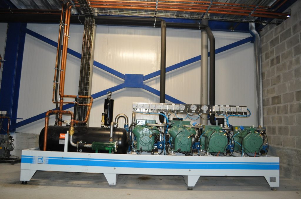 La instalación se compone de una cámara de positivo para la conservación del producto fresco, una sala de manipulación refrigerada a +8ºC para la elaboración del pescado, un túnel de congelación y una cámara de congelados para el almacenaje de congelados.